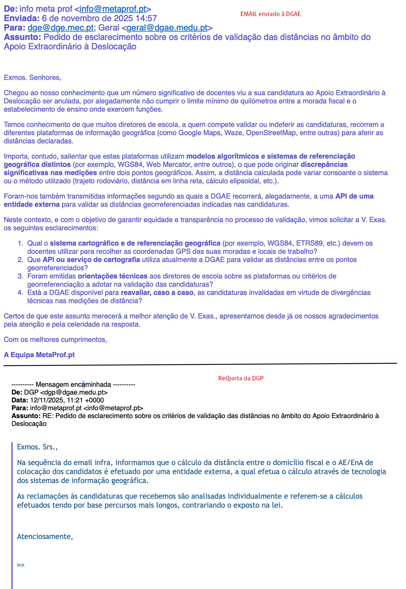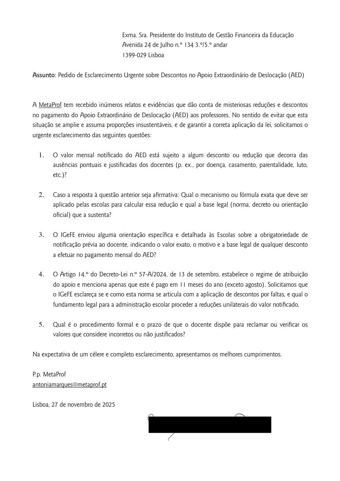 Três meses após o início do ano letivo 2025/2026 , a metaPROF apresenta o 2º Relatório de Análise da Implementação do Apoio Extraordinário à Deslocação (AED), a medida governativa que visa compensar os docentes que residem a uma distância superior a 70 km da sua escola de colocação.